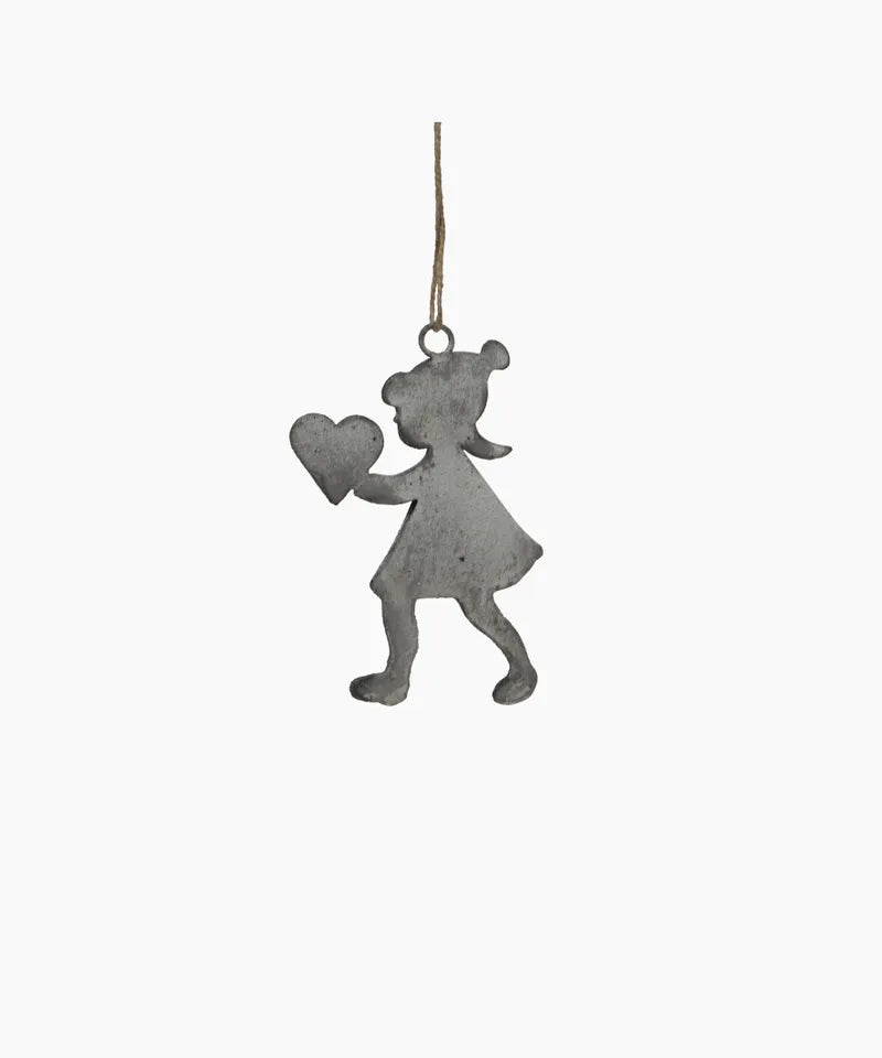 A delicate ash grey hanging girl decoration, bringing a sweet yet modern touch to your Christmas tree.