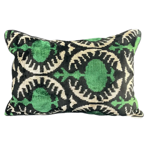 SILK VELVET IKAT CUSHION COVER - GREEN POM