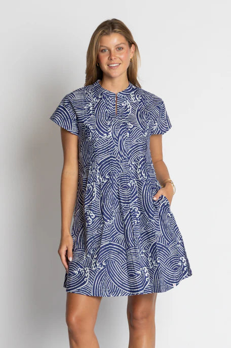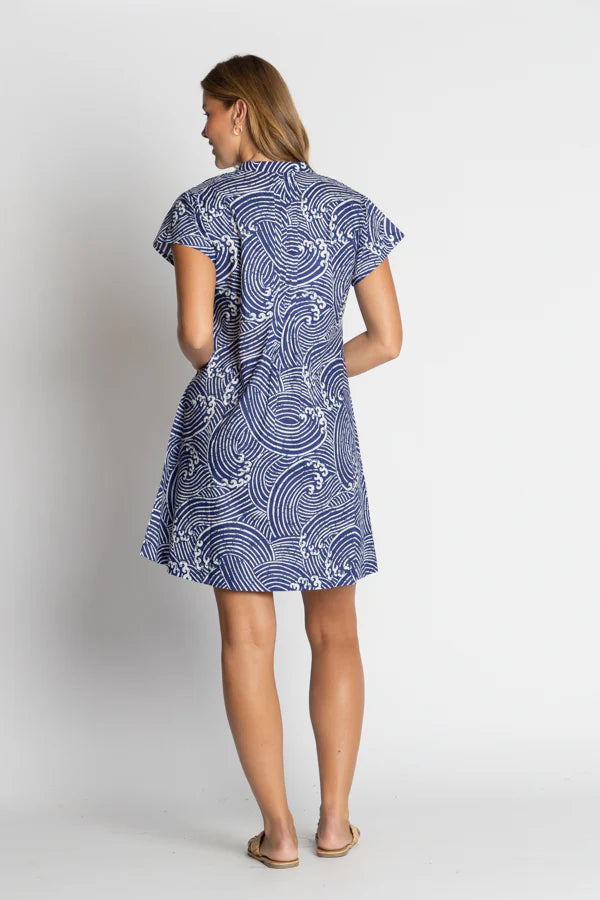 The IBSA Casper Dress combines comfort and style in one versatile piece. Crafted from 100% cotton, this relaxed-fit dress features a Nauru collar with a flattering V-neck and vertical tucks from the bodice to the waist, creating a subtle tailored look. Short sleeves and a curved hem add to its casual sophistication, while practical side pockets bring functionality to everyday wear. Perfect for work, weekend outings, or relaxed summer days, this dress is a must-have for a modern, effortless wardrobe.