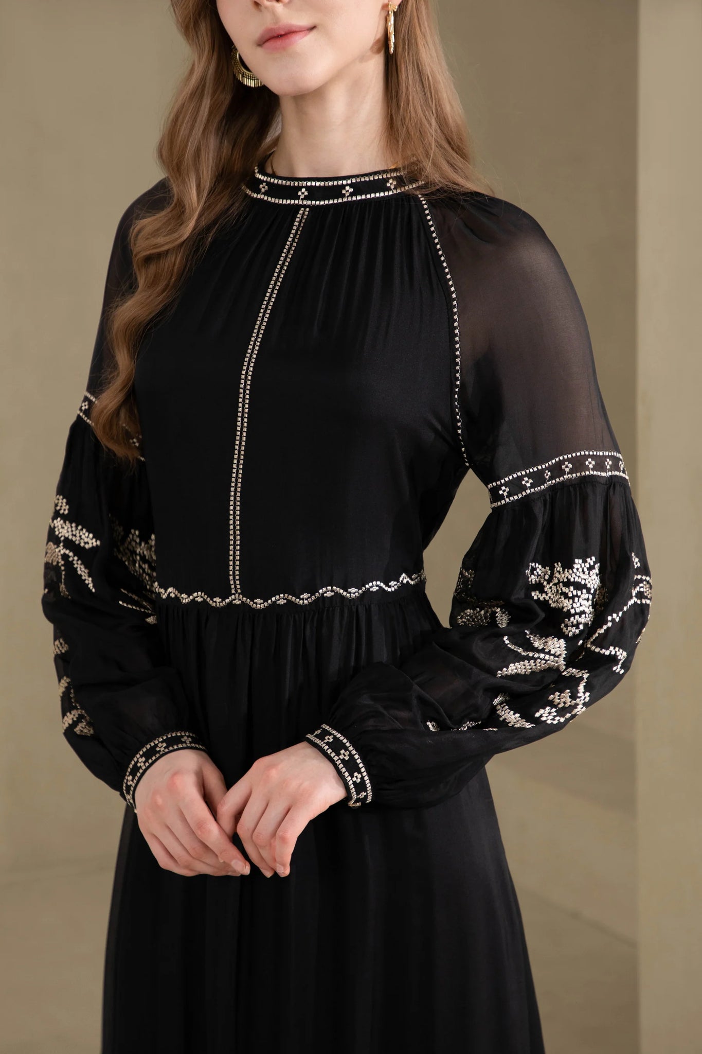 OLIVIANE EMBROIDERED DRESS - BLACK