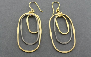 3 OVAL HOOP EARRINGS - GOLD PLATED & OXIDISED