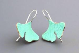 LARGE COPPER PATINA GINKGO EARRINGS