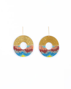 BEADED HANDWOVEN ORGANIC CIRCULAR FRINGE EARRINGS - BLUE
