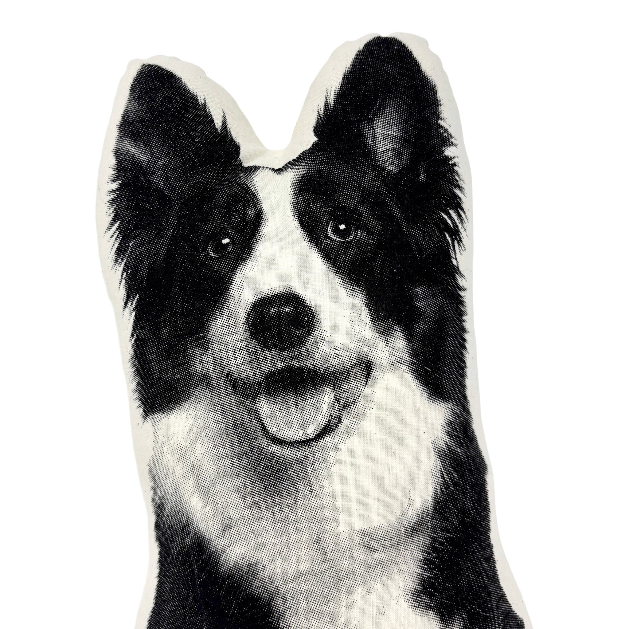 Hand Silkscreened, Contour Shaped Border Collie Pillow