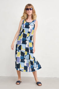SLEEVELESS GRASS WAVE DRESS - BLOCK SHAPES BILBERRY