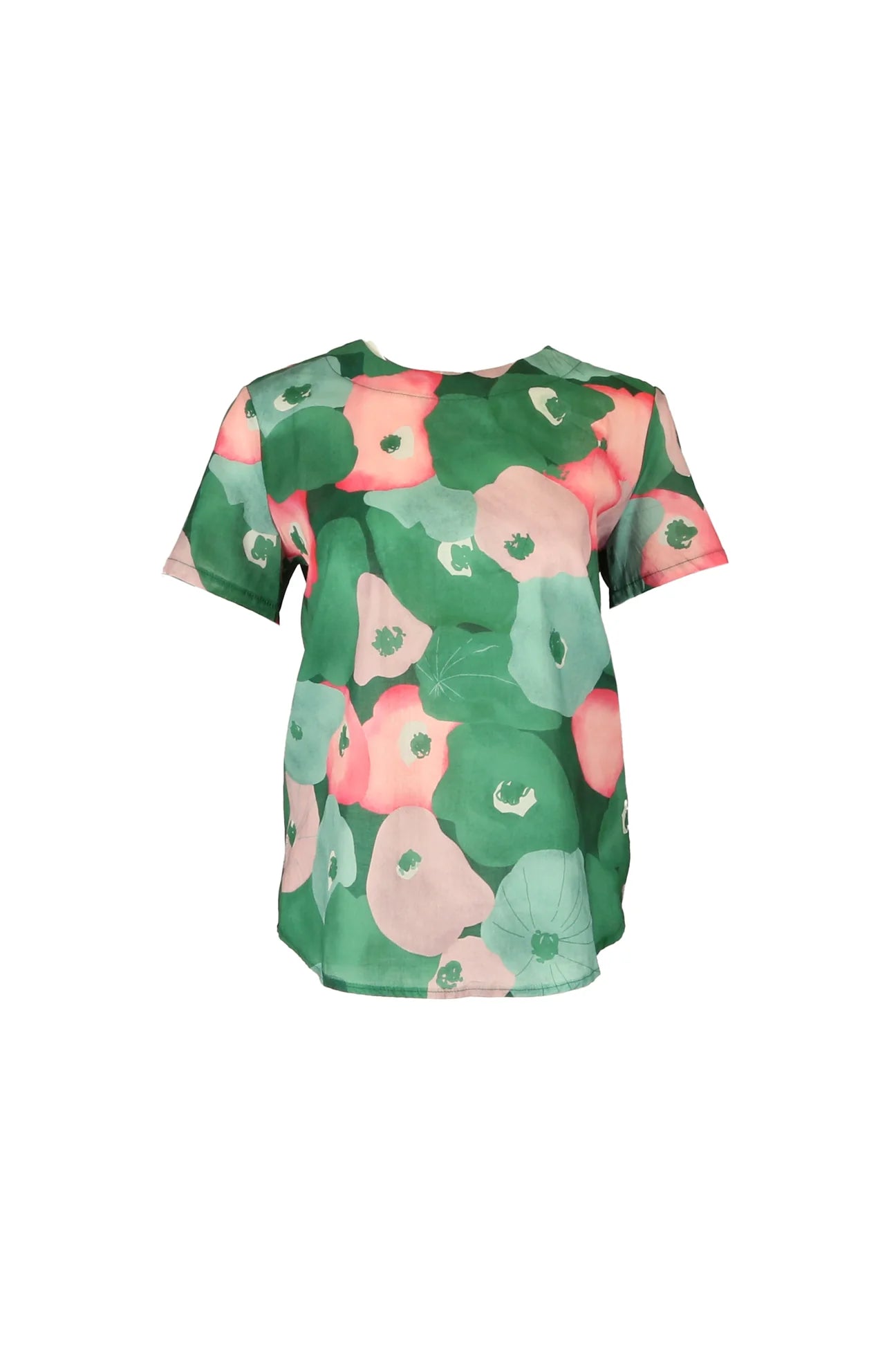 Our signature Olga Top is one of our best-sellers. A little more modest and roomy than the tee, it is a straight cut, with a short sleeve, crew neck and a box pleat at the back to give it more fullness and movement.