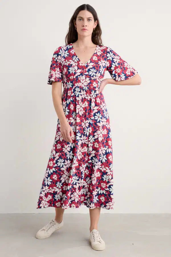CHATEAUX DRESS (HALF SLEEVE) - SEASHORE FLORAL YACHT