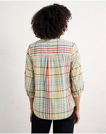 Introducing our Seasalt Flower Weave Top - Collaged Tulips Maritime! Made from a soft and airy drapey satin fabric, this top features a voluminous bodice, three-quarter blouson sleeves, and a delicate frill and notch neckline. Adorned with an original Seasalt print, it's a beautiful and unique addition to your wardrobMain Garment:60% Viscose 40% Viscose (LENZING™ ECOVERO™)