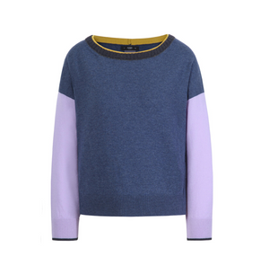 BOAT-NECK PULLOVER - COLOUR BLOCKING STONE BLUE