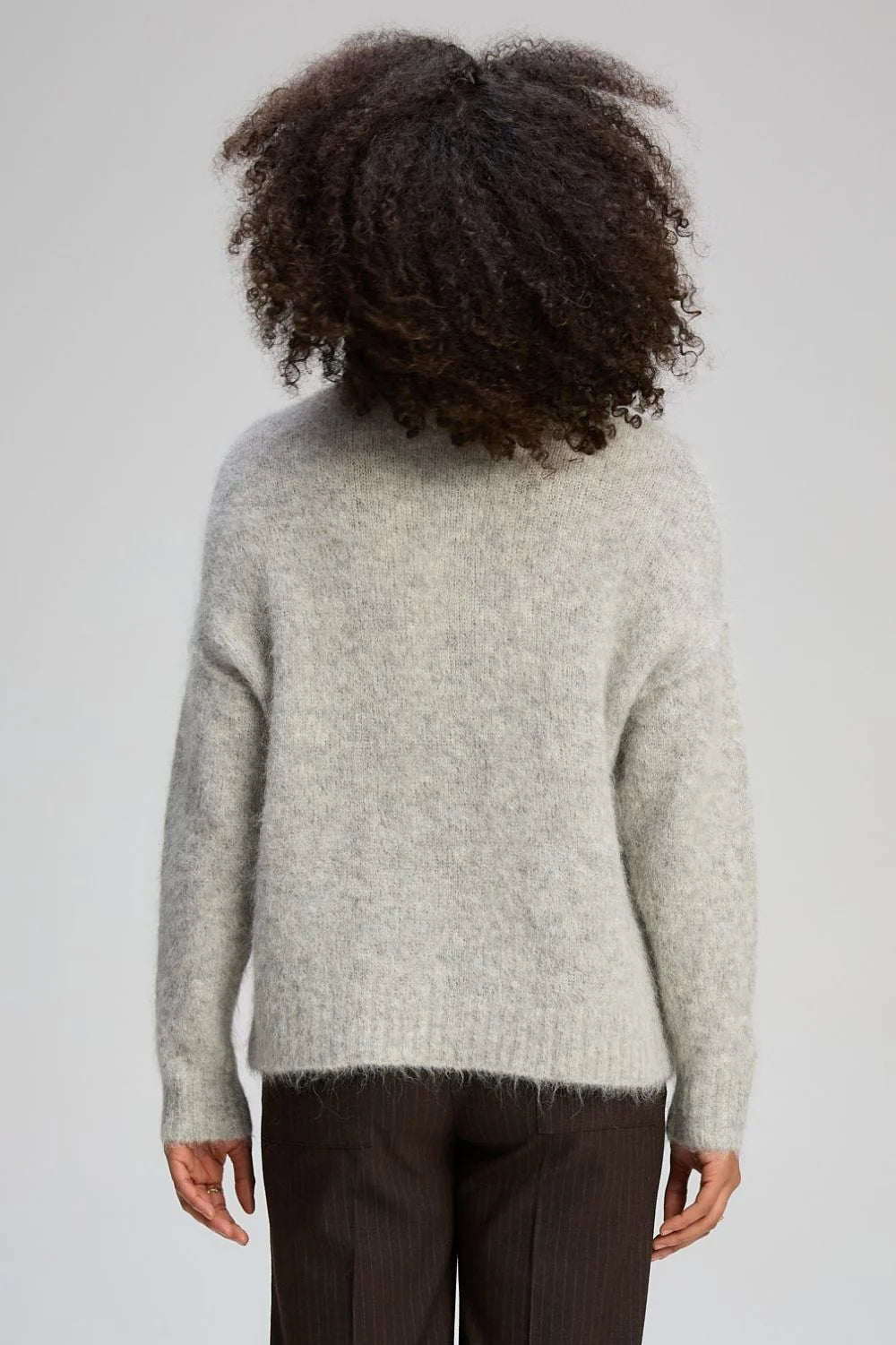 - Wide contrast ribbed hemline features rolled knit