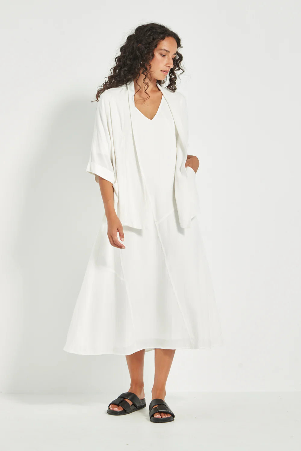 The ultimate lightweight layer, the Cayman Jacket is crafted in our soft weave mesh, perfectly coordinated with the Cayman pant, shirt, vest, or dress. Designed with elbow-length sleeves and a curved side hem, it offers flattering coverage front and back, without the weight or structure of a traditional jacket. An effortless throw-on piece that adds polish and versatility to your wardrobe.