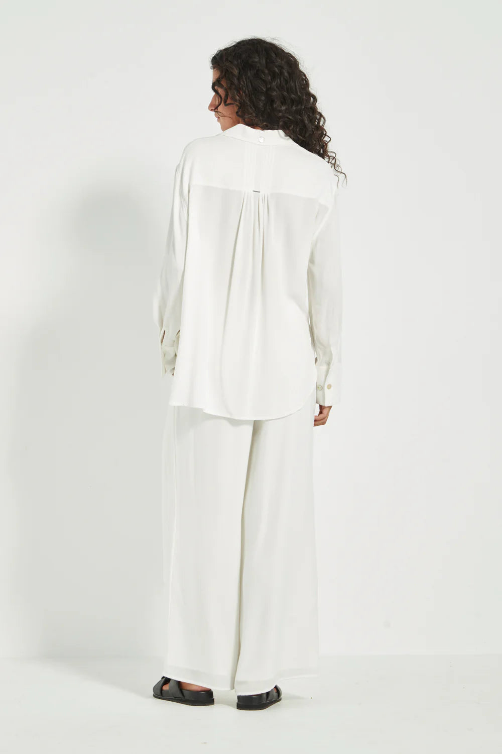 Relaxed elegance in every detail. The Cayman Pant is cut in a soft weave mesh and designed with a full-length, wider leg silhouette, elasticated waistband, and slant side pockets for everyday ease. Fully lined in self-fabric for a fluid, seamless feel. Complete your look by pairing it with the coordinating Cayman Shirt or Vest for an effortlessly refined outfit.