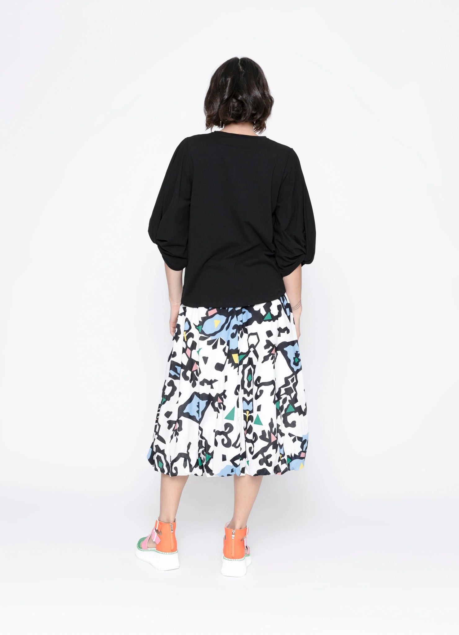 This top features a flattering scoop hem line and elegant puff sleeves with a permanent internal tie for a half-up finish. Elevate any outfit with this sophisticated and exclusive piece, perfect for showing off your unique style.