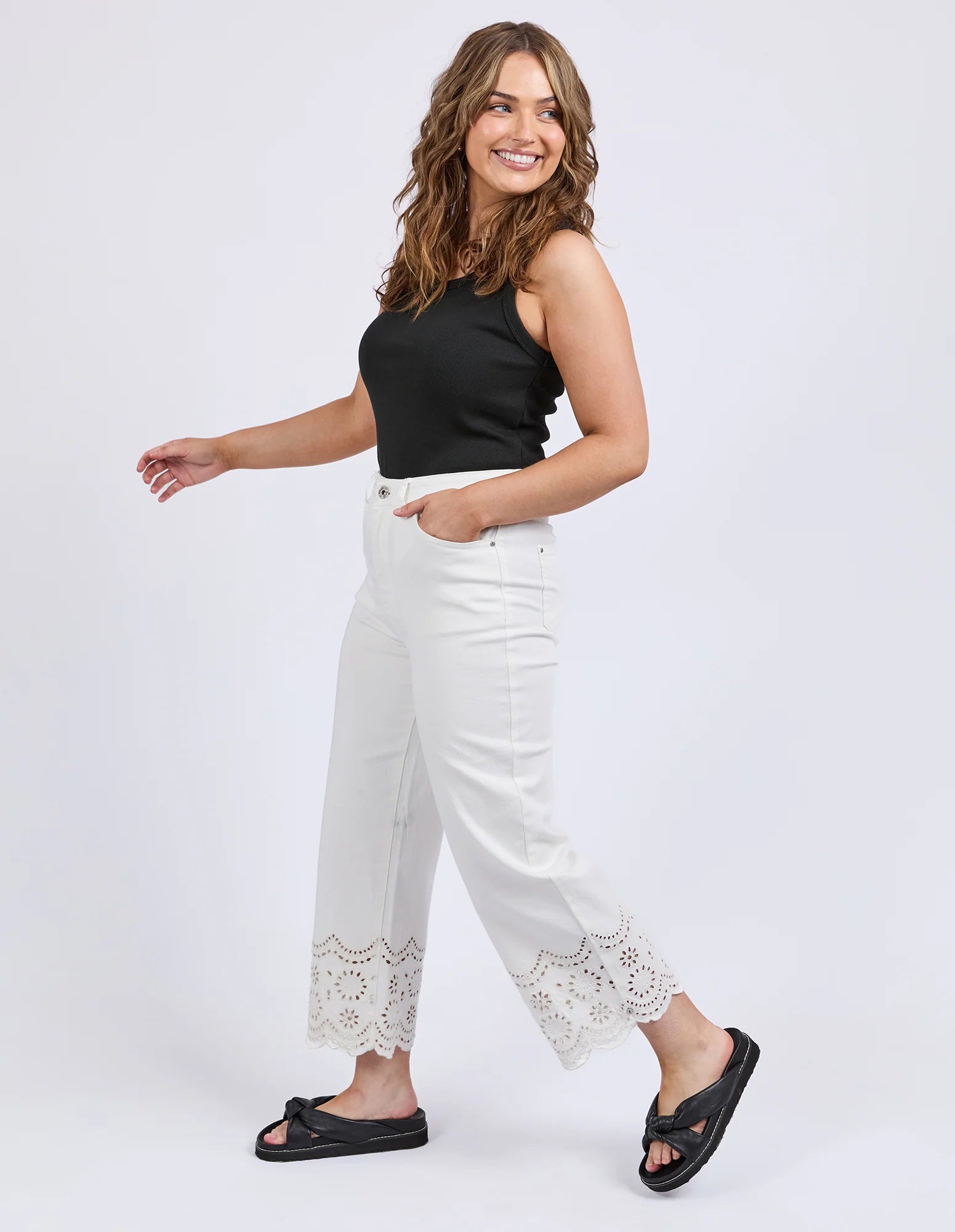 Denim but make it pretty! The gorgeous new lace denim jeans are for those occasions where you want the comfort of denim but a little bit dressy! The hemline of these jeans features a gorgeous lacey cut out that shows off those shoes and suntan making them a perfectly pretty pair of jeans for the season.