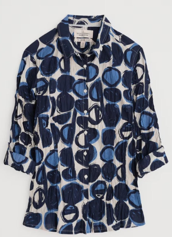 The Larissa Shirt is a year-round favourite. Made from the softest organic cotton with a casual crinkled appearance, the beauty of this shirt is that it doesn't need ironing & just wash and twist to keep the crinkle. This semi-fitted style is easy-to-style and comfortable, with long sleeves a button loops so you can roll up the cuffs to change your look. Each season, it showcases some of our most-loved prints, created by our talented textile designers.