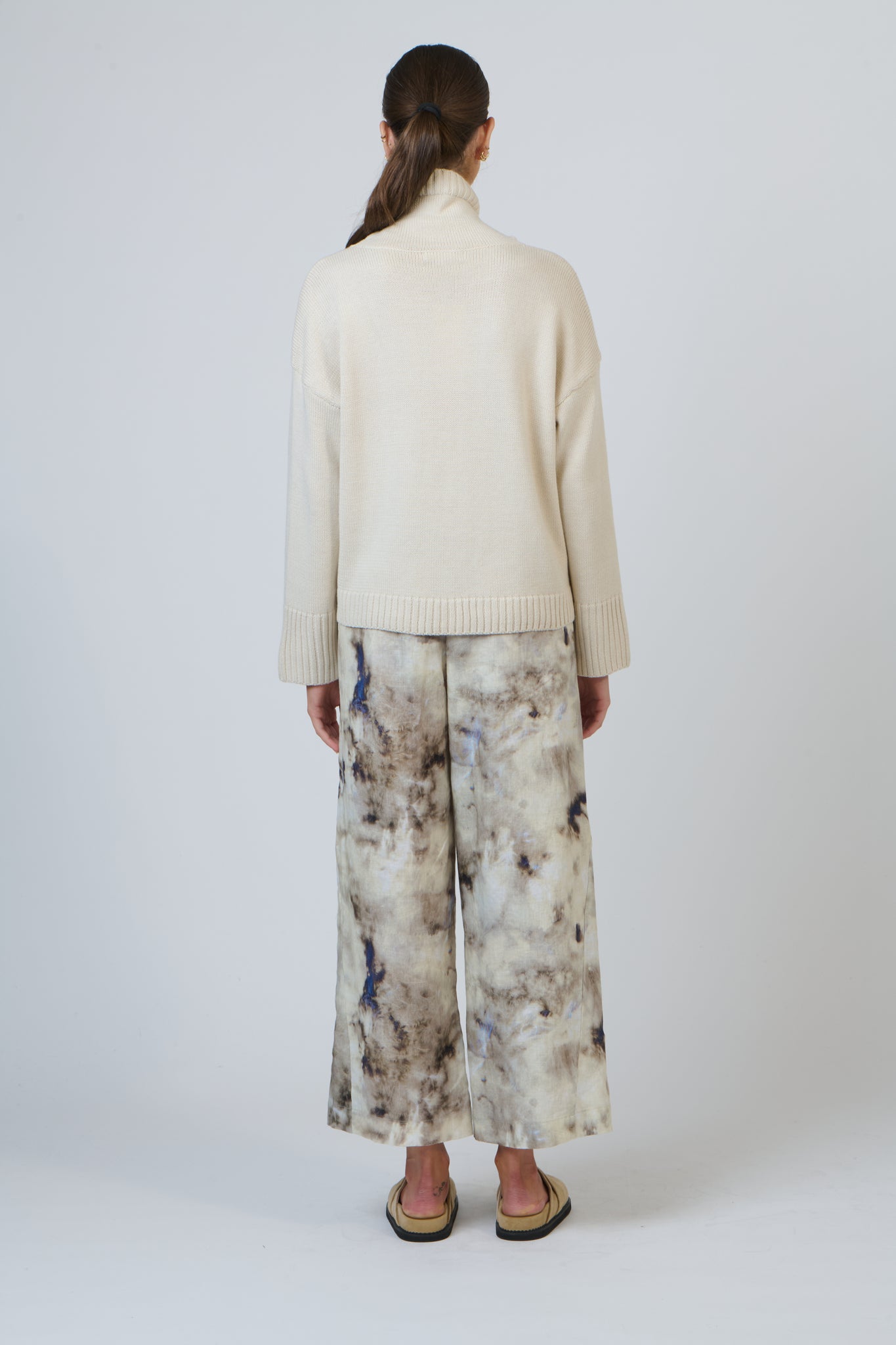 A full-length, wide-leg trouser featuring two front pockets. Made from 100% breathable linen,