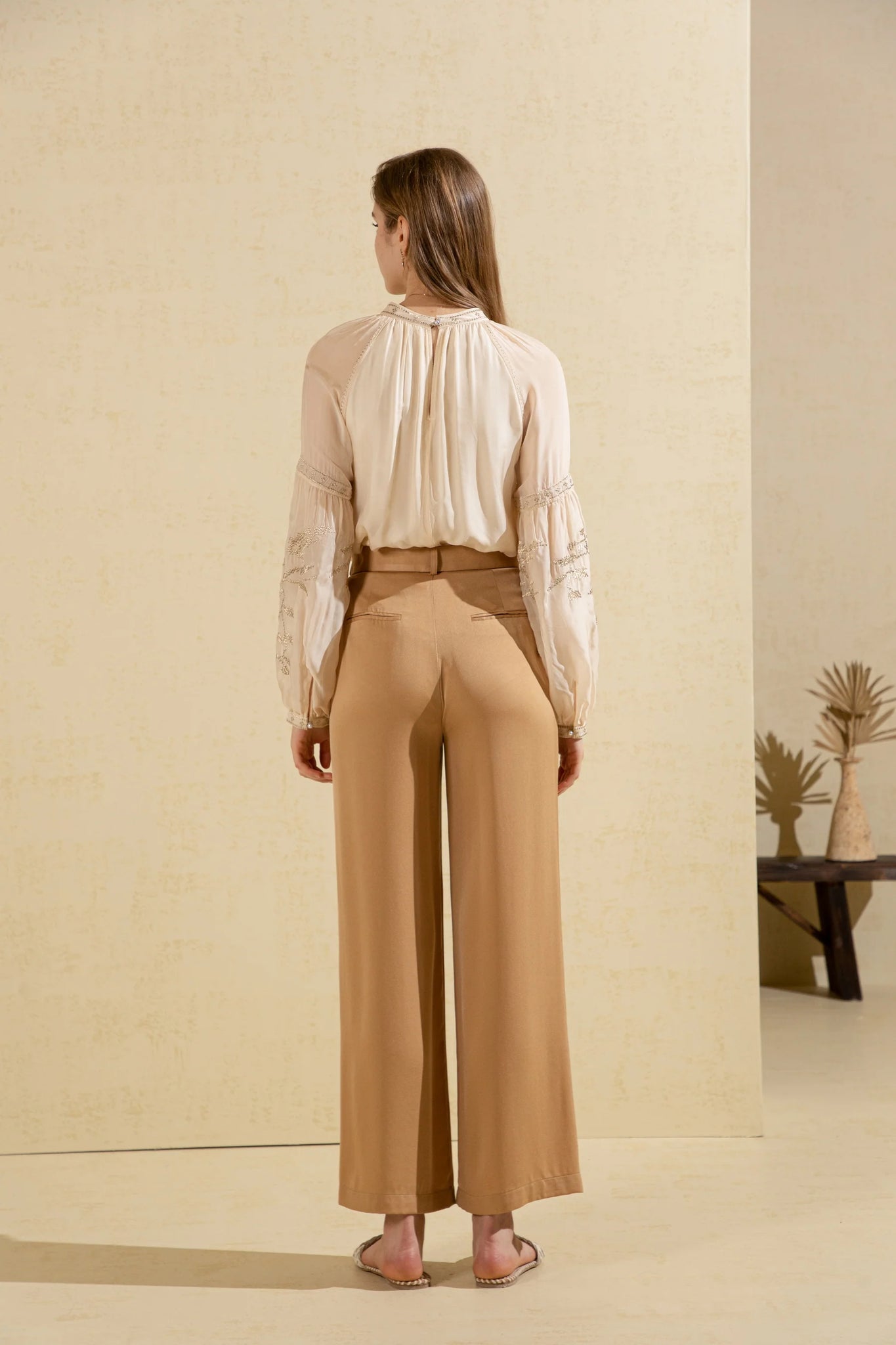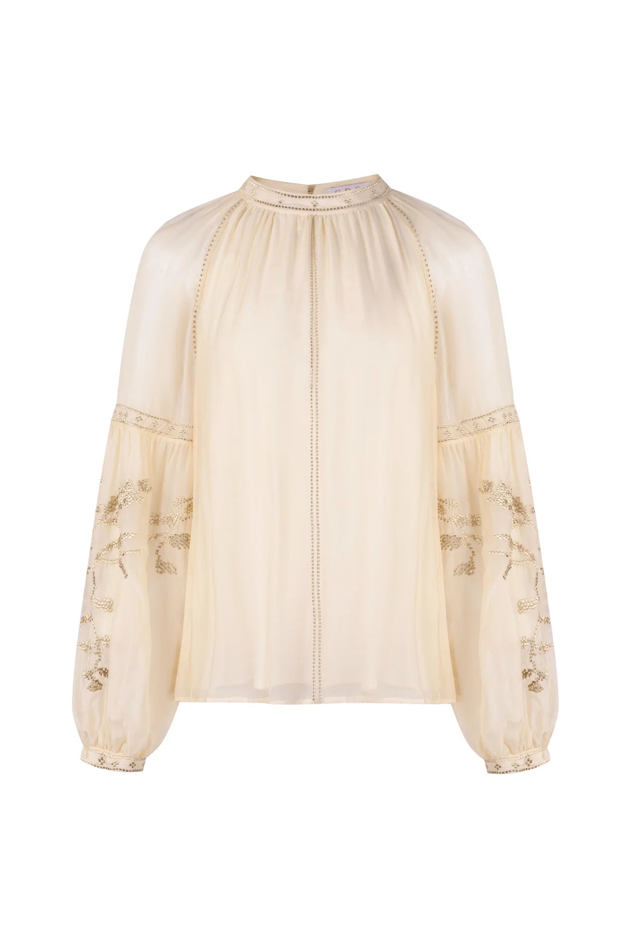 Oliviane embroidered blouse is adorned with intricate embroidery, showcasing exquisite craftsmanship and attention to detail. Delicate patterns weave across the fabric, creating a visually stunning effect that exudes elegance and sophistication. The embroidery adds texture and dimension, making this blouse a standout piece in any wardrobe.-Lined