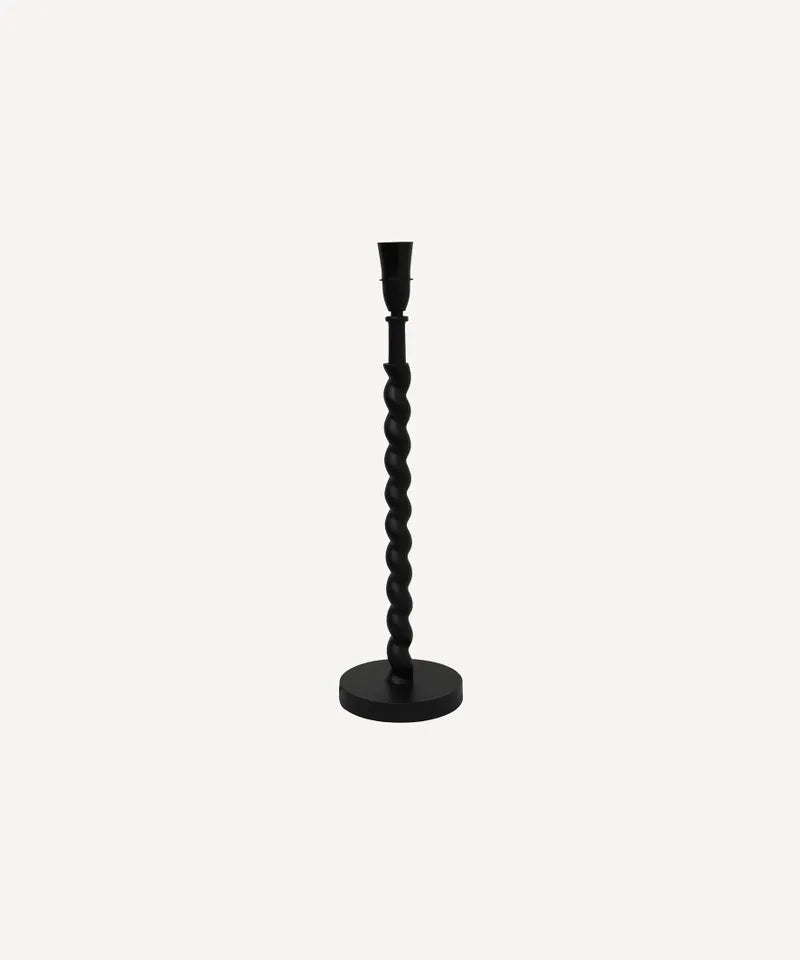 Modern black twist short lamp base adds a masculine element to interior spaces.